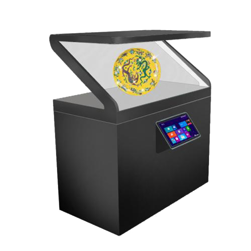 全息柜是一種通過幻影成像技術讓展示品呈現三維立體特殊影像效果的展示設備,觀眾不需要佩戴任何偏光眼鏡,能從全息柜任何一面看到展示空間自由飄浮的3D影像和圖形。
